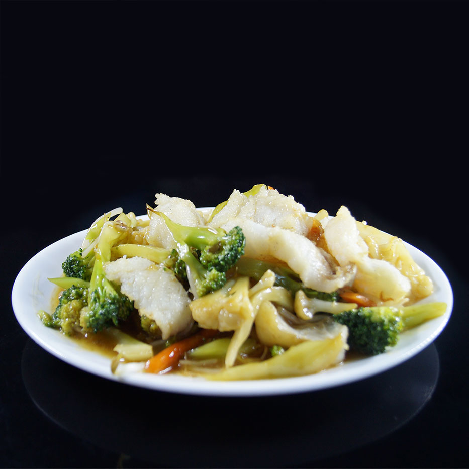 Verduras de Estacion, diente de dragon salteadas con congrio.