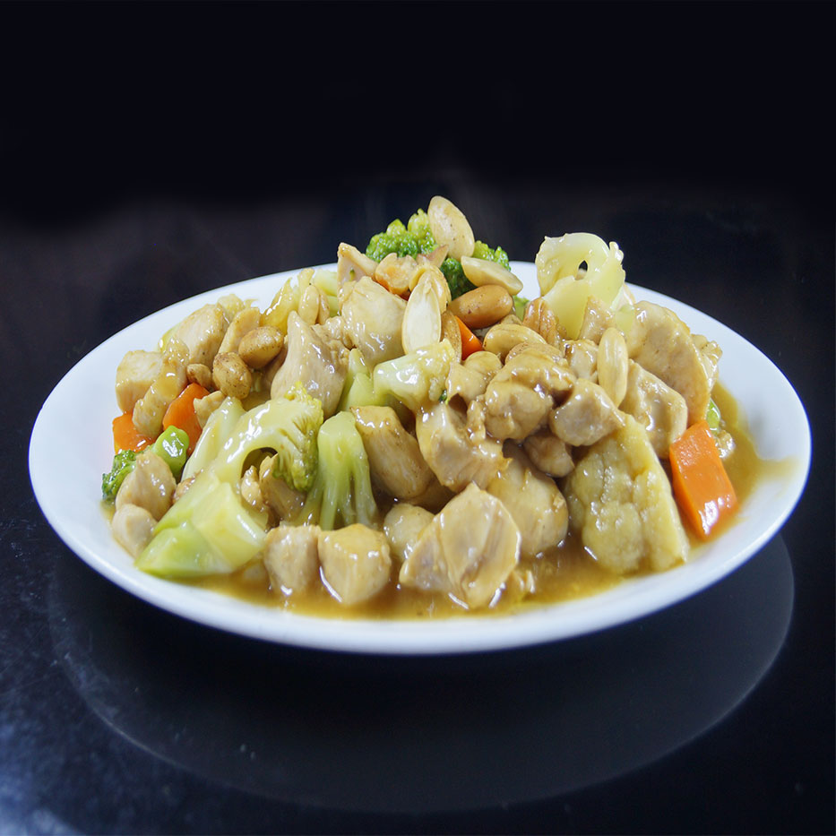Trozos de Pavo salteado con verduras de estacion y almendras.